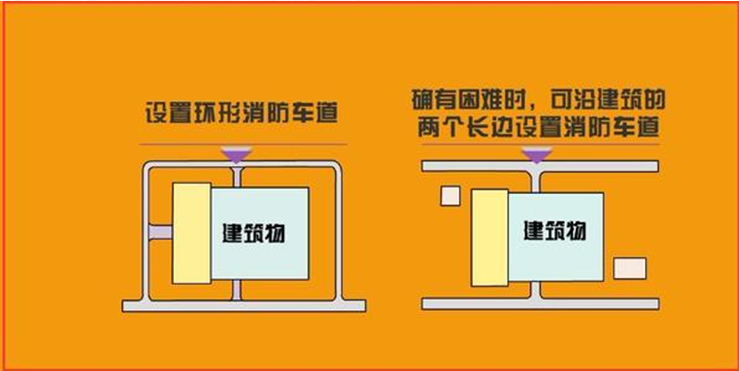 - 高层厂房,占地面积大于3000m2的甲、乙、丙类厂房和占地面积大于1500m2的乙、丙类仓库,应设置环形消防车道或沿建筑物的两个长边设置消防车道。