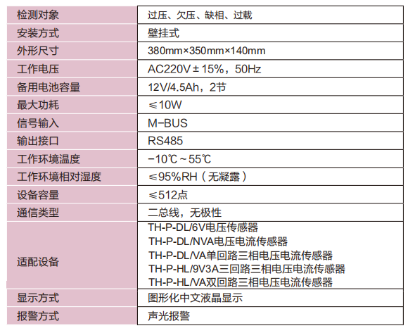 TH-PBM-FJ型消防设备电源状态监控分机向上通过RS485总线与系统主机连接,向下通过二总线与电压、电压/电流传感器连接,监控分机与末端传感器组网,延长通讯距离,简化施工布线,当检测到传感器异常时,监控分机发出声光报警,并显示具体报警信息及安装位置,同时上传异常信息到主机,实现数据的同步远传,分机具备就地显示功能,可查看其连接所有传感器数值及状态,分机、传感器具备备用电池供电,可保证系统断电后8小时正常运行,极大提升了消防设备电源状态监控系统安全性。